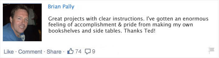 You get intricate details of every angle, every corner, every joint. The plans will NEVER leave you guessing or scratching your head over any detail.