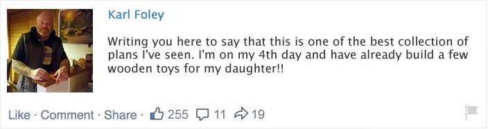 We've got plans that cover all levels of skill and competence. You do NOT need to be a master woodworker or have expensive machinery to use our plans.